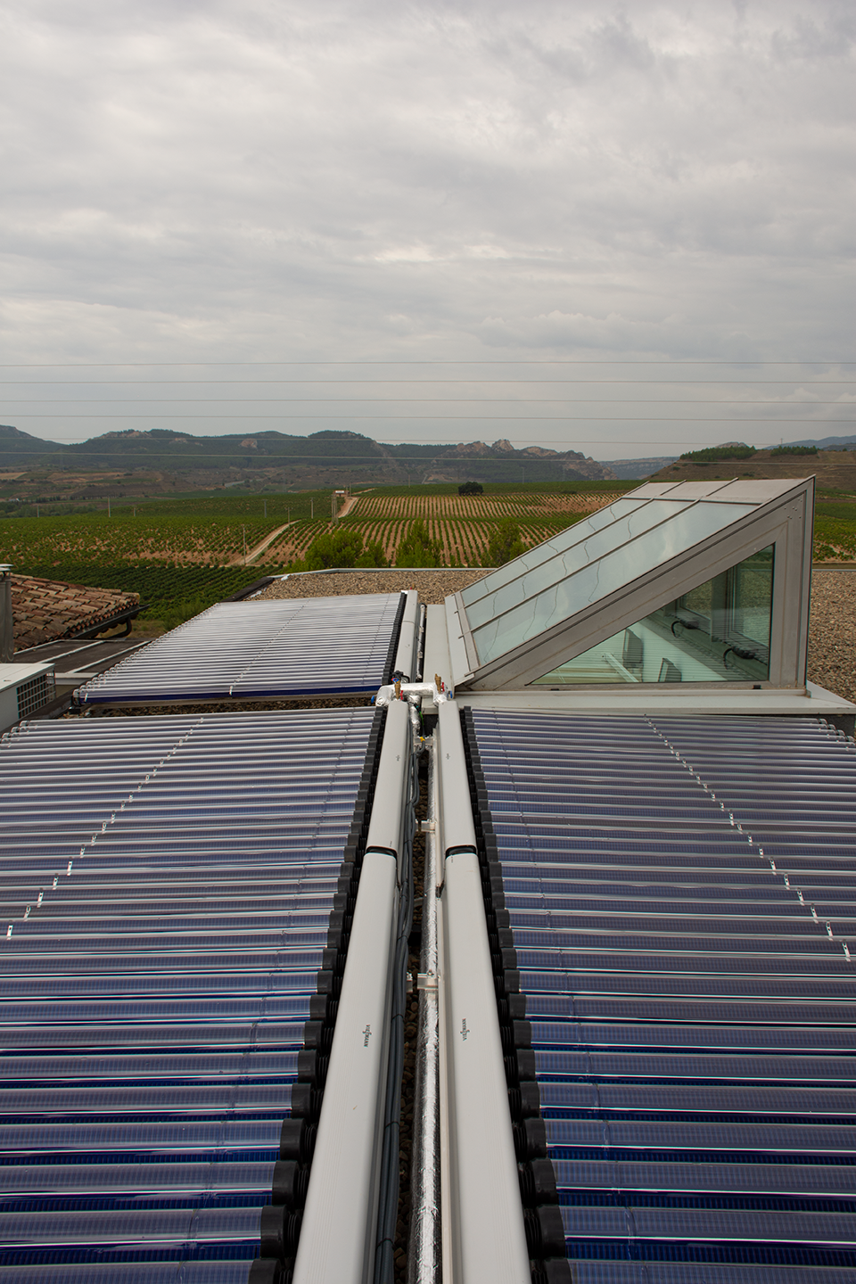 The audience, composed by representatives from the agro-food industry, consultants, solar thermal technology providers and academia, participated in a round-table discussion moderated by Susana Rivera, from Spanish Cooperatives. Afterwards, SHIP2FAIR guests could see the real application of this solution through a tour at Bodegas RODA, including the adapted solar collectors plant installed at the winery (picture). This installation based on vacuum/ evacuated tubes produces heat to boil the amount of water that the winery needs for processes such as fermentation, the production of warm water and the heating. By mans of another system to absorb the heat, the water is refrigerated in order to be used in other processes required to produce wine, such as the control of temperature of the fermentation and refrigeration processes. The warm water generated from solar thermal energy is also used in a system to absorb the excess of humidity existent in a nineteenth century cellar excavated in stone, next to the Ebro river, used to storage wine.